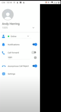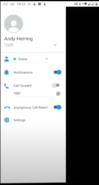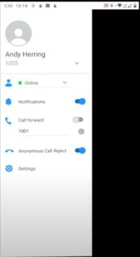 From this menu pictured above, you can see your name, extension number and a range of options.