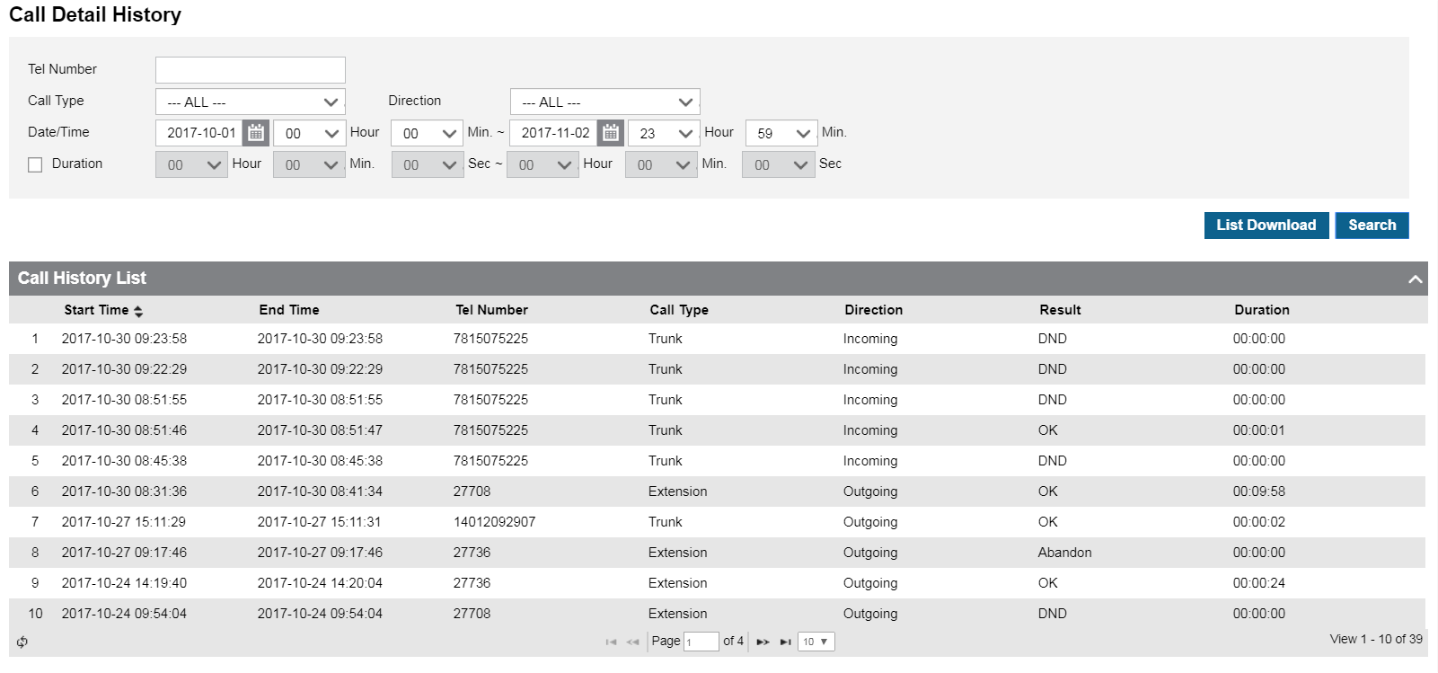 Download Call Detail History (Excel file)