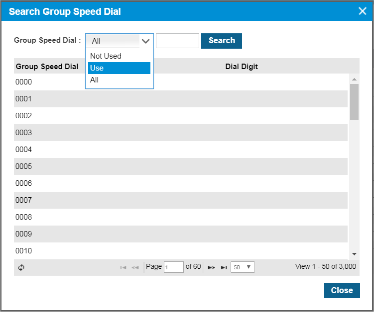 - Click Group Speed Dial Summary. To filter the list, select All, Not Used, or Use and then click Search.