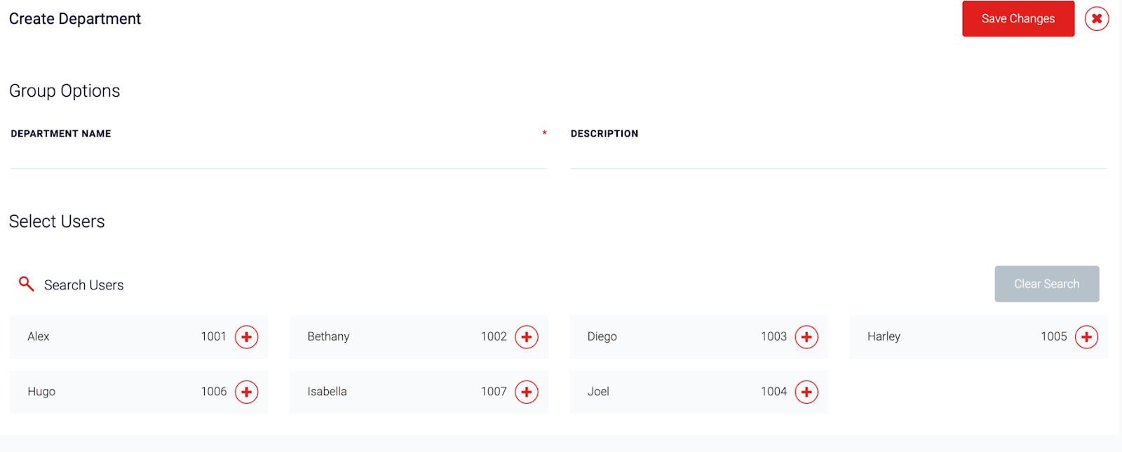 Select the users you wish to add to the department