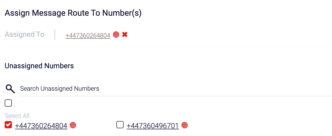 Assign a mobile number to the Message Route (this has to be a number purchased from CallSwitch One)